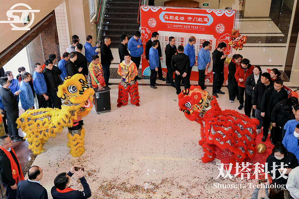 仪式现场,舞狮表演无疑是最大的亮点。专业团队的精湛技艺,将瑞狮的灵动与威武展现得淋漓尽致。尤其是瑞狮登高采青的瞬间,引得全场掌声雷动,象征着 双塔人勇于攀登、敢于超越的奋斗精神。激昂的鼓点振奋人心,灵动的雄狮福满乾坤,为公司新一年的发展注入了磅礴的文化力量。