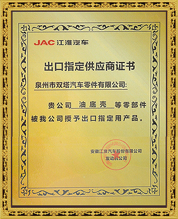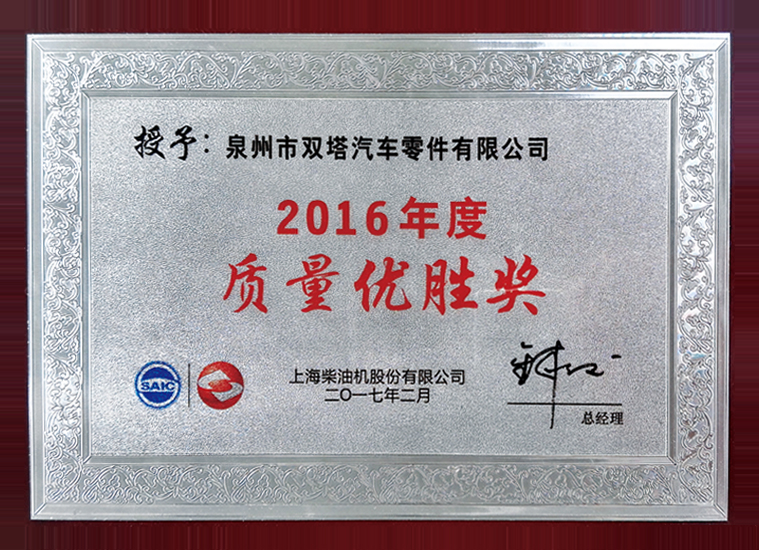 In 2005, the trademark "ST" was recognized as a Famous Trademark of Fujian Province by the Fujian Provincial Trademark Recognition Committee. The company has also received numerous honorary certificates issued by governments at all levels and industry authorities, including "Industrial Star Enterprise", "Famous Trademark of Fujian Province" and "Famous Brand Product of Fujian Province". The "Shuangta" brand series of auto parts have been widely recognized by numerous customers both at home and abroad.