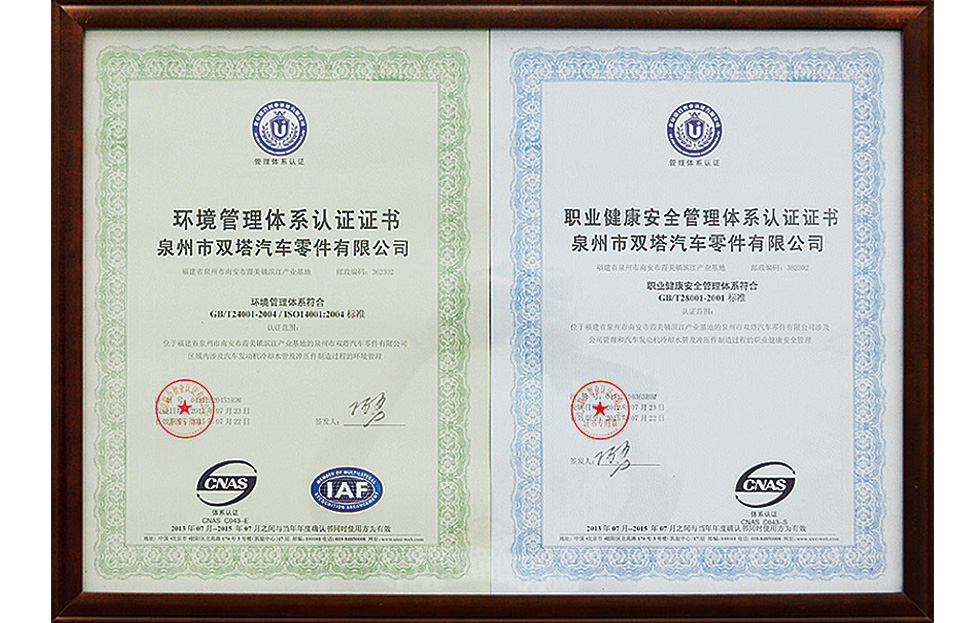 热烈庆祝我司成功取得《职业健康安全管理体系认证证书》和《环境管理体系认证证书》!这份成果的取得,离不开全体同事的同心协力、各部门的紧密配合与不懈努力。双认证的落地,不仅是公司管理体系走向标准化、专业化的重要体现,更是公司为大家筑牢职业健康安全防线、践行绿色发展的郑重承诺。